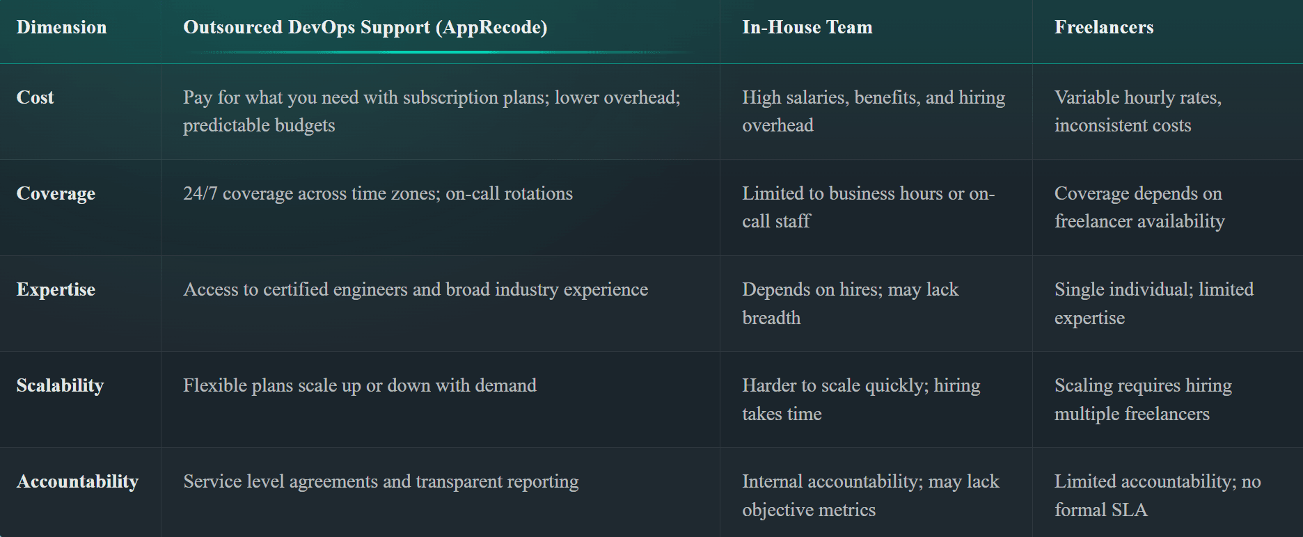 DevOps and Application Support vs In‑House DevOps vs Freelancers